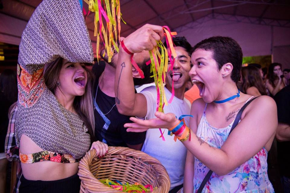 1- Quando meus convidados chegam no baile, já recebem as pulserinhas da sorte que eu trouxe lá de Pernambuco. É hora de pedir os milagres tudo.